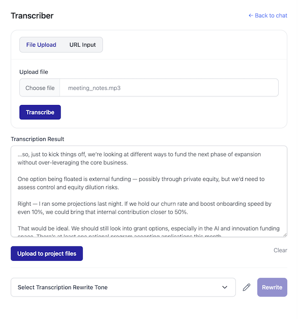 Create projects with OpenAI’s Vector Store integration. Your documents are indexed and searchable by AI.